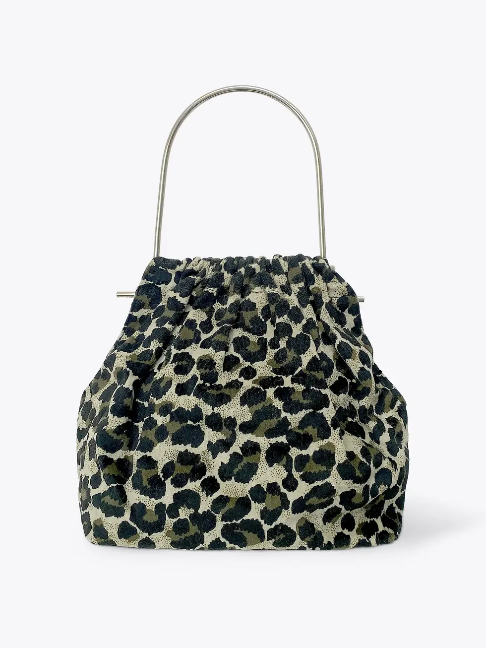 Bolsa de tecido texturizado com estampa de oncinha da marca Covenant.