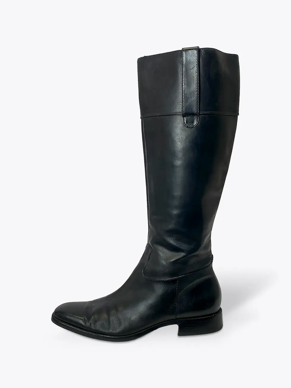 Bota de couro preta de cano alto da marca Ralph Lauren.
